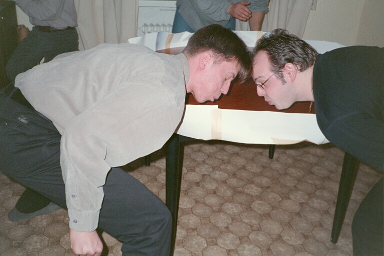 Keilailun jälkeen kilpailijat siirtyivät moottorimarssilla tai apostolin kyydillä jatkamaan kymmenottelua Proffan kellariin, jossa mukaan turnaukseen liittyi myös ensikertalainen Mikko, ja 221D:ssä pyörähtivät Haima ja moninkertainen Necathlon-voittaja Pekka.